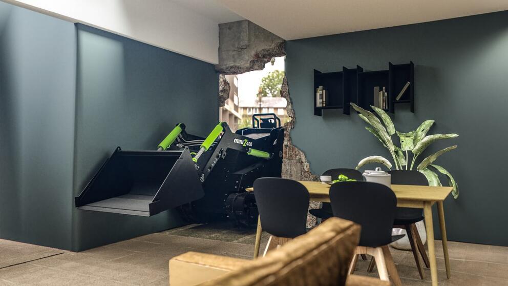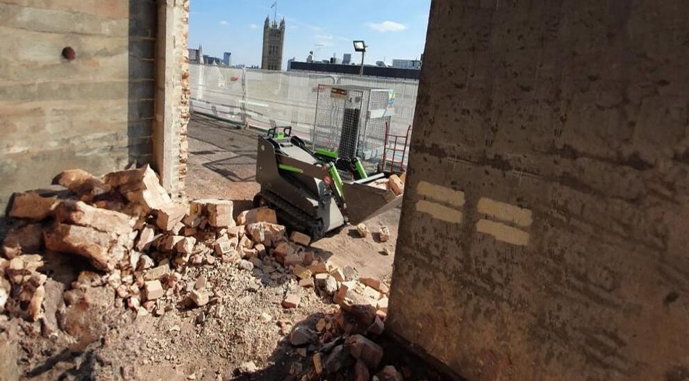 Unmatched. This remotely operated small tracked loader conquers tight spaces with all-terrain capability and external oversight.